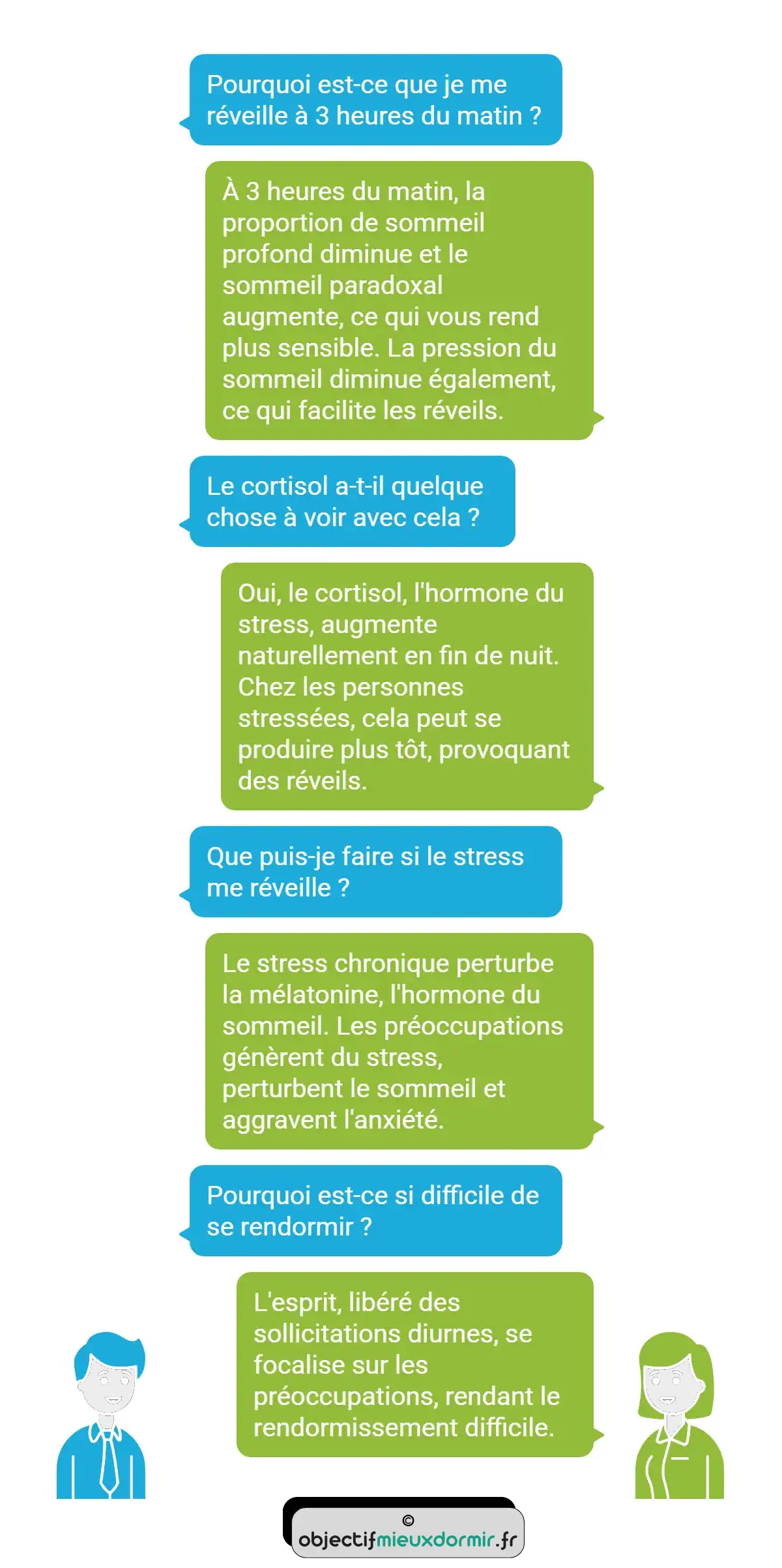 Nous vous le rappelons : ce contenu est fourni à titre informatif uniquement et ne constitue pas un avis médical. Les troubles persistants du sommeil nécessitent une évaluation professionnelle appropriée.